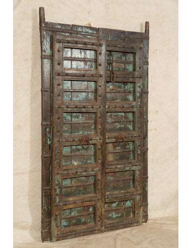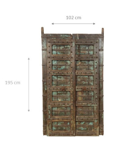 Massief teakhouten antieke deur/poort met afmetingen 102 cm lengte, 18 cm diepte, 195 cm hoogte. Deze deur is afkomstig van de sloop en restauratie van belangrijke oude gebouwen. Fijn gerestaureerd en behandeld voor buitengebruik, is elke deur een stuk echt en uniek antiek. Alle afmetingen hebben betrekking op de maximale totale afmetingen van het artikel.