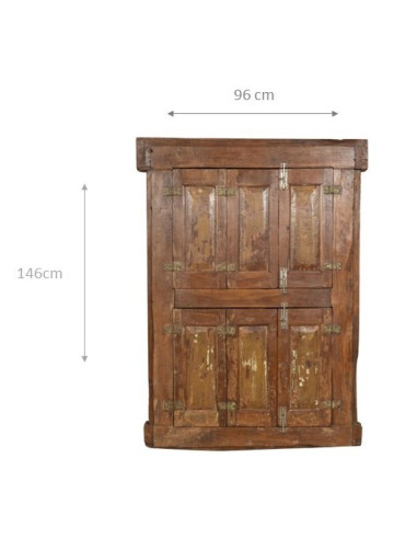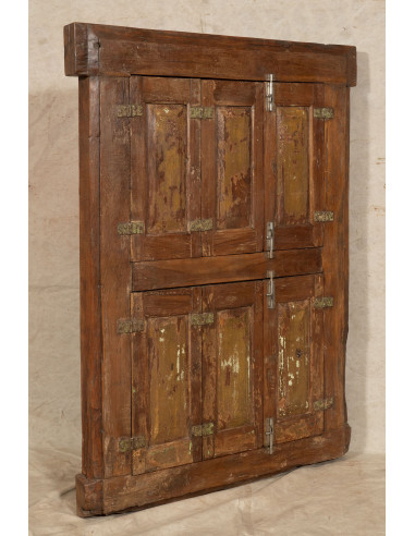 Raamhordeur van massief hout en oud ijzer met binnen- of buitenkozijn