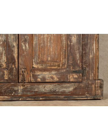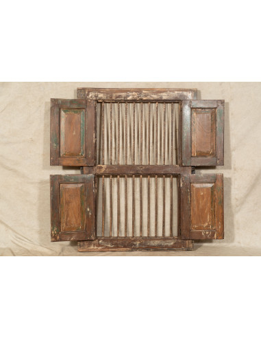 Raamhordeur van massief hout en oud ijzer met binnen- of buitenkozijn