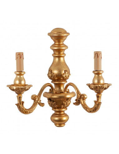 Armoedige wandlamp in hout en ijzer met antiek bladgoud afwerking Made in Italy