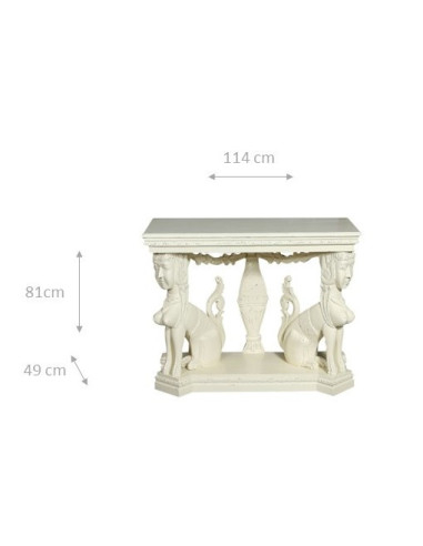 Massief houten console met antiek witte afwerking L114xPR49xH81 cm
