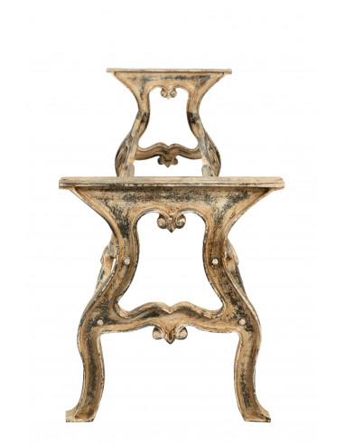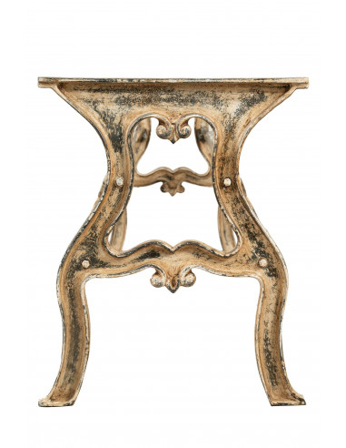 De gietijzeren basis, een dragende structuur van aanzienlijke afmetingen, kan grote stenen en marmeren bladen dragen, zelfs zeer zware. De basis is een getrouwe kopie van een werkbank uit een Engelse glasfabriek, gesloten in 1860.