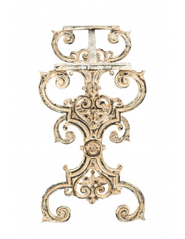 De gietijzeren basis, een dragende structuur van aanzienlijke afmetingen, kan grote, zelfs zeer zware stenen en marmeren bladen dragen.