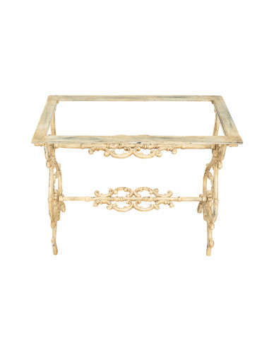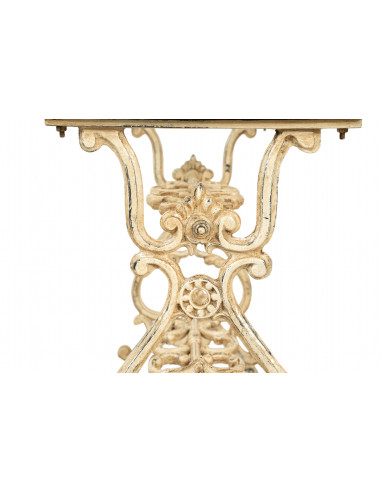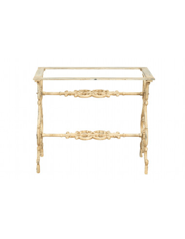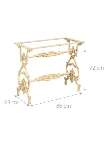 De gietijzeren basis, een dragende structuur van aanzienlijke afmetingen, kan grote, zelfs zeer zware stenen en marmeren bladen dragen. De basis is een getrouwe kopie van een werkbank uit een Engelse glasfabriek, gesloten in 1860.