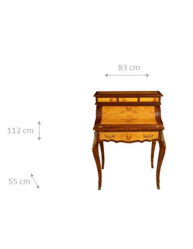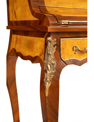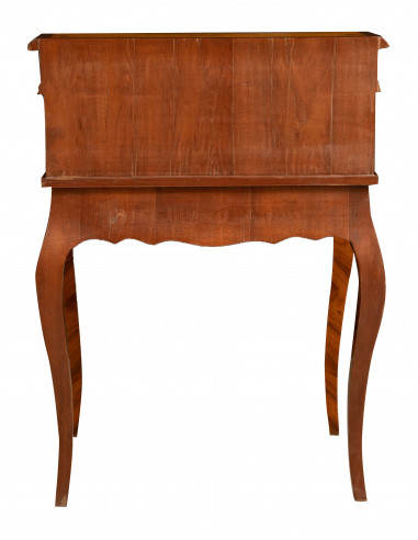 Een bureau van zeer hoge ambachtelijke waarde met afmetingen lengte 83 cm, diepte 53 cm, hoogte 112 cm, een ware expressie van meesterschap die alleen bereikt kan worden door een paar deskundige ateliermeesters. Een echt meesterwerk waarvan de structuur wordt verrijkt door nauwkeurige inlegwerkstukken die fijn zijn gemonteerd om zeer aangename tijdloze geometrieën te verkrijgen. Een functioneel object dat het meubilair in staat stelt om de tijd te trotseren met behoud van zijn charme.Alle afmetingen hebben betrekking op de maximale maat van het artikel