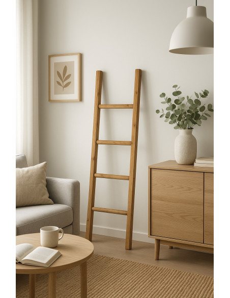 Houten badhanddoekenladder die zowel qua uiterlijk als qua constructie getrouw de oude ladders reproduceert. Een zeer veelzijdig meubelstuk, maar ook een functioneel hulpmiddel voor het dagelijks leven. Omdat ze met de hand worden vervaardigd, kan elke ladder qua afwerking enigszins verschillen van de andere. De afmetingen van de ladder zijn 130 cm hoog, 35 cm breed en 4 cm diep.