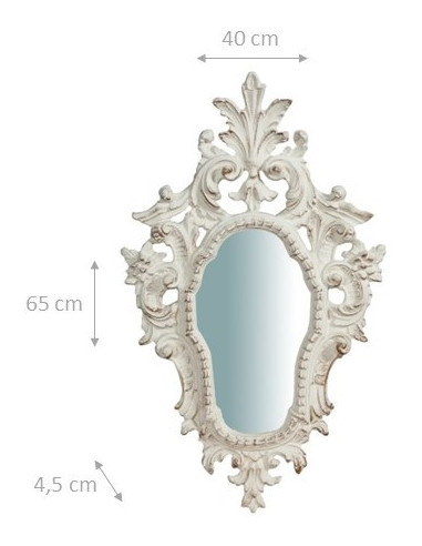 Houten wandspiegel met antiek witte afwerking Made in Italy