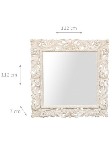 HOUTEN WANDSPIEGEL MET ANTIEK WITTE AFWERKING MADE IN ITALY