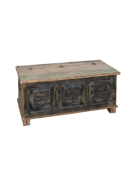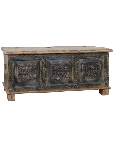 Opbergkist gemaakt van gerecycled massief hout met een breedte van 123 cm, een diepte van 52 cm en een hoogte van 54 cm. Stevig en functioneel, ideaal voor liefhebbers van antieke meubels en hout. Elk meubelstuk is uniek.