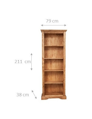 Landelijke boekenkast van massief lindenhout met natuurlijke afwerking L79xPR38xH211 cm. Gemaakt in Italië