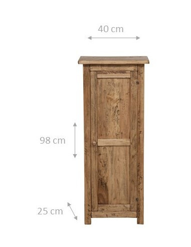 Landelijke kast van massief lindehout met natuurlijke afwerking L40xPR25xH98 cm. Gemaakt in Italië