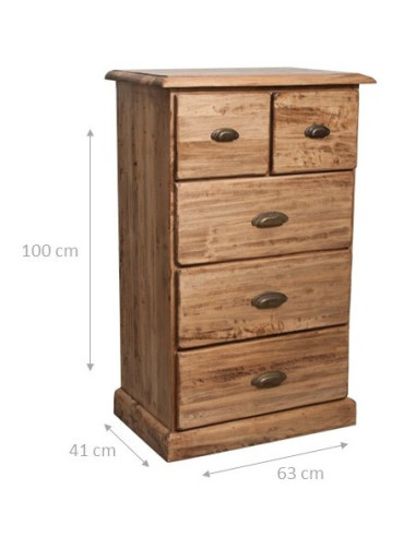 Landelijke ladekast in massief lindehout, natuurlijke afwerking L63xPR41xH100 cm. Gemaakt in Italië