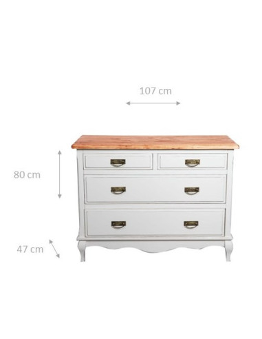 Country ladekast in massief lindehout verouderd wit structuurblad in walnootafwerking L107xPR47xH80 cm. Gemaakt in Italië