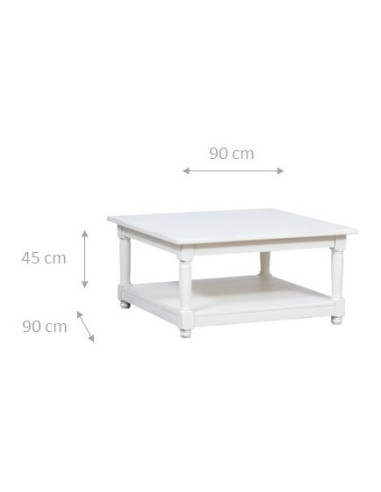 Landelijke salontafel in massief lindenhout met witte afwerking L90xPR90xH45 cm. Gemaakt in Italië