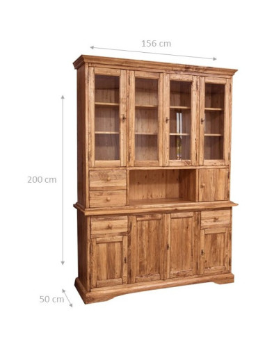Landelijke vitrine in massief lindenhout, natuurlijke afwerking L156xPR50xH200 cm. Gemaakt in Italië