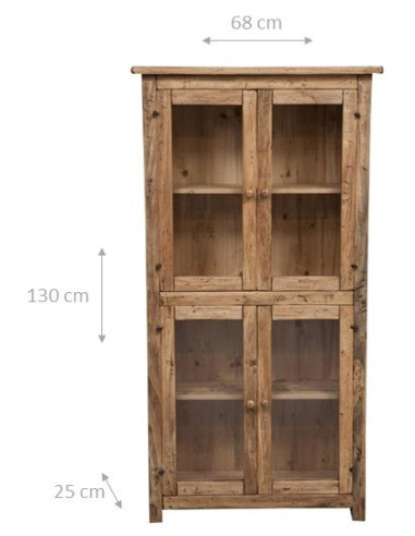 Landelijke vitrine in massief lindenhout met natuurlijke afwerking L68xPR25xH130 cm. Gemaakt in Italië