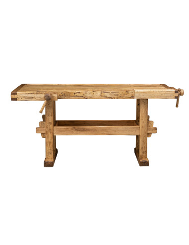 Landelijke werkbank in massief lindehout, natuurlijke afwerking L194xPR84xH90 cm. Gemaakt in Italië