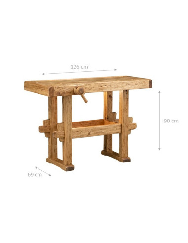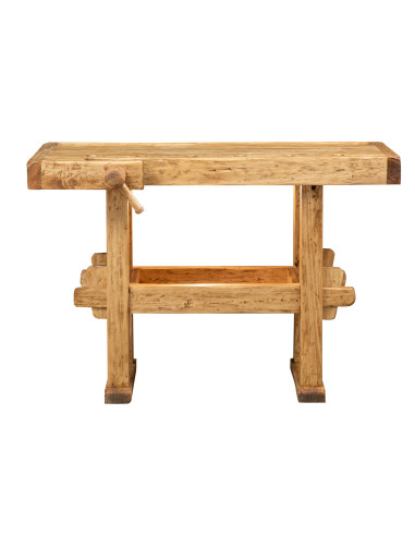 Landelijke werkbank in massief lindehout, natuurlijke afwerking L126xPR69xH90 cm. Gemaakt in Italië