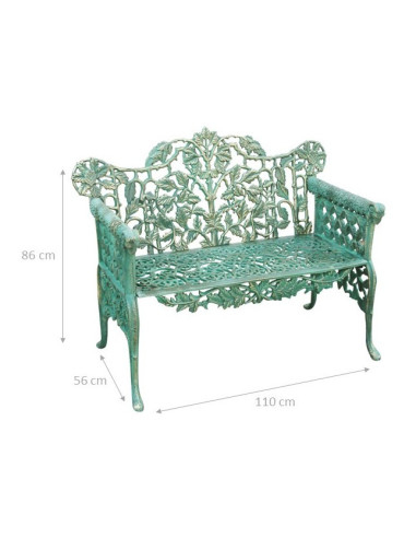 Liberty bank in gietijzer met antiek groene afwerking L110xPR56xH86 cm