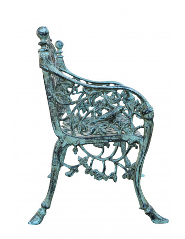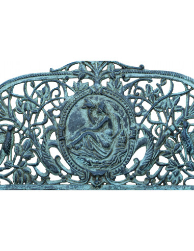 Zeer stevige, stabiele en zware gietijzeren bank van 105 cm breed, 62 cm diep en 90 cm hoog, met een nauwkeurige, volledig handgemaakte afwerking, waardoor een echt antiek effect wordt bereikt. Hij is zorgvuldig vervaardigd en bootst het ontwerp na van oude Engelse en Franse banken uit 1800. Hij past elegant in elke binnen- of buitenomgeving. Alle afmetingen hebben betrekking op de maximale totale afmetingen van het artikel.