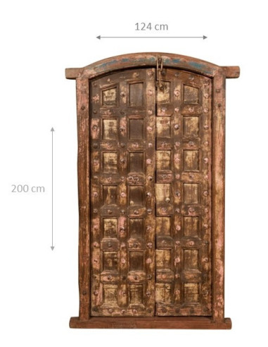 Massief teakhouten antieke deur/poort met afmetingen 124 cm lengte, 20 cm diepte, 200 cm hoogte. Deze deur is afkomstig van de sloop en restauratie van belangrijke oude gebouwen. Fijn gerestaureerd en behandeld voor buitengebruik, is elke deur een stuk echt en uniek antiek. Alle afmetingen hebben betrekking op de maximale totale afmetingen van het artikel.