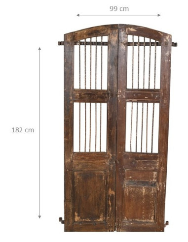 Oude deur/poort van massief teakhout met een lengte van 107 cm, een diepte van 4 cm en een hoogte van 177 cm. Deze deur is afkomstig uit sloopwerkzaamheden en restauraties van oude en belangrijke gebouwen. Elke deur is zorgvuldig gerestaureerd en behandeld voor gebruik buitenshuis en is een echt en uniek antiek stuk. Alle afmetingen hebben betrekking op de maximale afmetingen van het artikel.