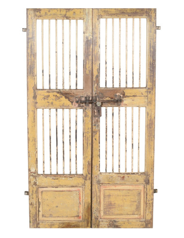 Oude deur/poort van massief teakhout met een lengte van 104 cm, een diepte van 4 cm en een hoogte van 173 cm. Deze deur is afkomstig uit sloopwerkzaamheden en restauraties van oude en belangrijke gebouwen. Elke deur is zorgvuldig gerestaureerd en behandeld voor gebruik buitenshuis en is een echt en uniek antiek stuk. Alle afmetingen hebben betrekking op de maximale afmetingen van het artikel.
