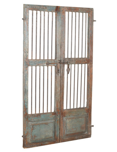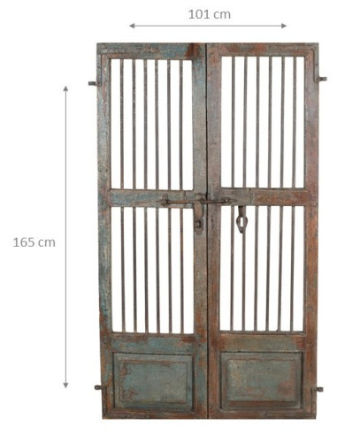 Oude deur/poort van massief teakhout met een lengte van 104 cm, een diepte van 4 cm en een hoogte van 173 cm. Deze deur is afkomstig uit sloopwerkzaamheden en restauraties van oude en belangrijke gebouwen. Elke deur is zorgvuldig gerestaureerd en behandeld voor gebruik buitenshuis en is een echt en uniek antiek stuk. Alle afmetingen hebben betrekking op de maximale afmetingen van het artikel.