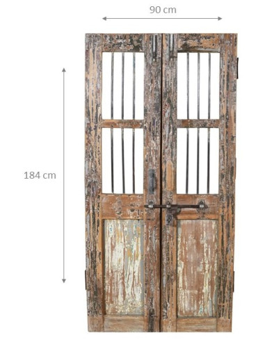 Antieke deur/poort van massief teakhout met een lengte van 90 cm, een diepte van 4 cm en een hoogte van 184 cm. Deze deur is afkomstig uit sloopwerkzaamheden en restauraties van oude en belangrijke gebouwen. Elke deur is zorgvuldig gerestaureerd en behandeld voor gebruik buitenshuis en is een echt en uniek antiek stuk. Alle afmetingen hebben betrekking op de maximale afmetingen van het artikel.