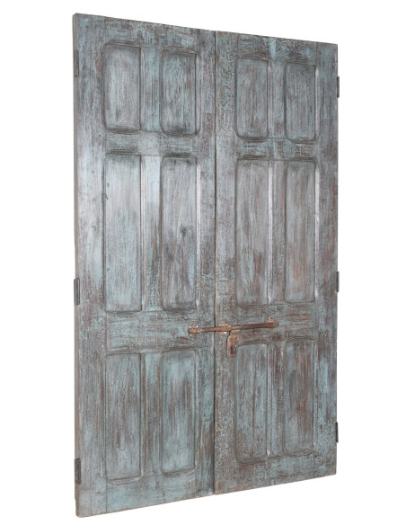 Antieke deur/poort van massief teakhout met een lengte van 132 cm, een diepte van 5 cm en een hoogte van 208 cm. Deze deur is afkomstig uit sloopwerkzaamheden en restauraties van oude en belangrijke gebouwen. Elke deur is zorgvuldig gerestaureerd en behandeld voor gebruik buitenshuis en is een echt en uniek antiek stuk. Alle afmetingen hebben betrekking op de maximale afmetingen van het artikel.