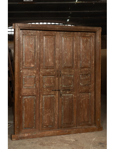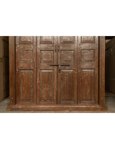 Massief teakhouten antieke deur/poort met afmetingen lengte 198 cm, diepte 15 cm, hoogte 220 cm. Deze deur is afkomstig van de sloop en restauratie van belangrijke oude gebouwen. Fijn gerestaureerd en behandeld voor buitengebruik, is elke deur een stuk echt en uniek antiek. Alle afmetingen hebben betrekking op de maximale totale afmetingen van het artikel.