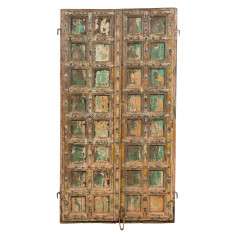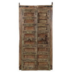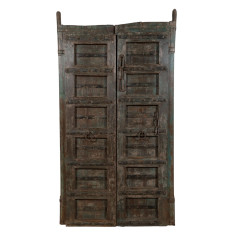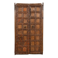 Massief teakhouten antieke deur/poort met afmetingen 119 cm lengte, 9 cm diepte, 215 cm hoogte. Deze deur is afkomstig van de sloop en restauratie van belangrijke oude gebouwen. Fijn gerestaureerd en behandeld voor buitengebruik, is elke deur een stuk echt en uniek antiek. Alle afmetingen hebben betrekking op de maximale totale afmetingen van het artikel.