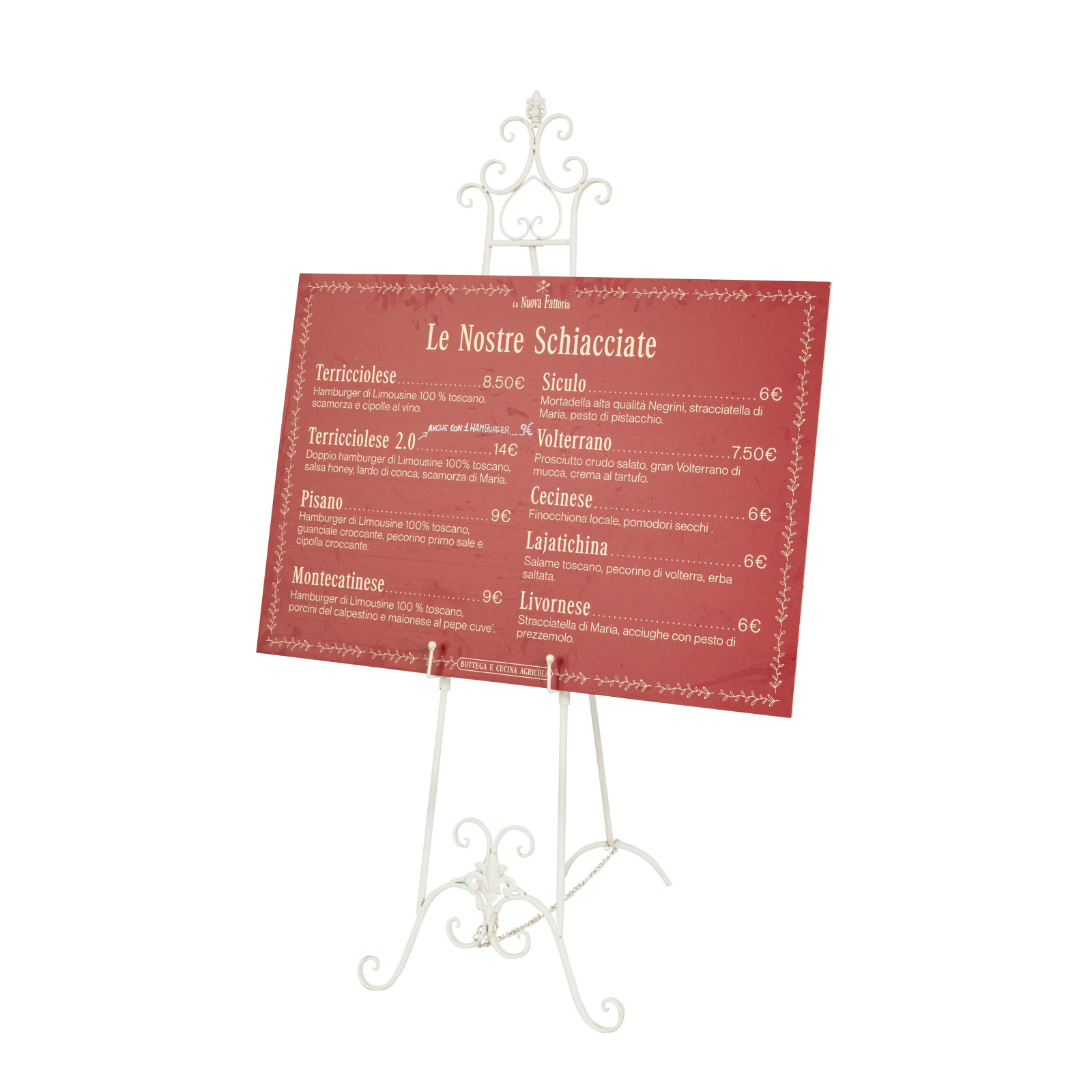 Elegante, praktische en stabiele statief-ezel voor schilderijen L53xDP96xH150 cm gemaakt van smeedijzer. Met aandacht voor de kleinste details is hij dankzij zijn veelzijdigheid ook ideaal als menuhouder of voor tentoonstellingen, etalages, galerijen.