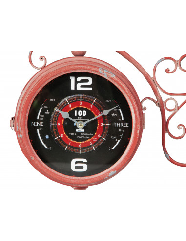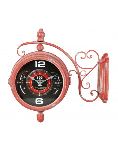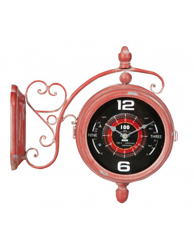 Station dubbelzijdige wandklok in ijzer met antiek rode afwerking