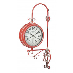 Station dubbelzijdige wandklok in ijzer met antiek rode afwerking