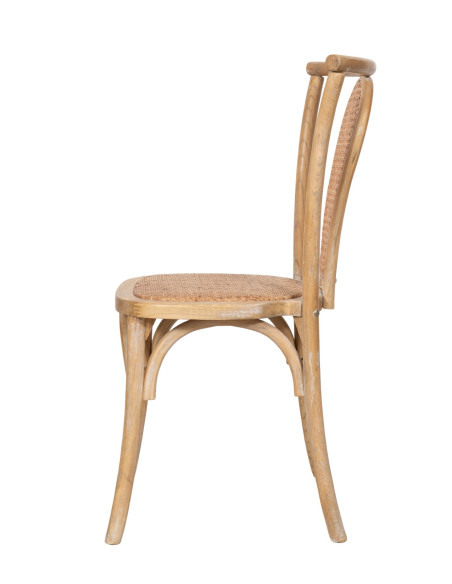 Stoel van massief hout en rugleuning van Weens riet, afwerking in licht walnoot