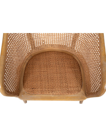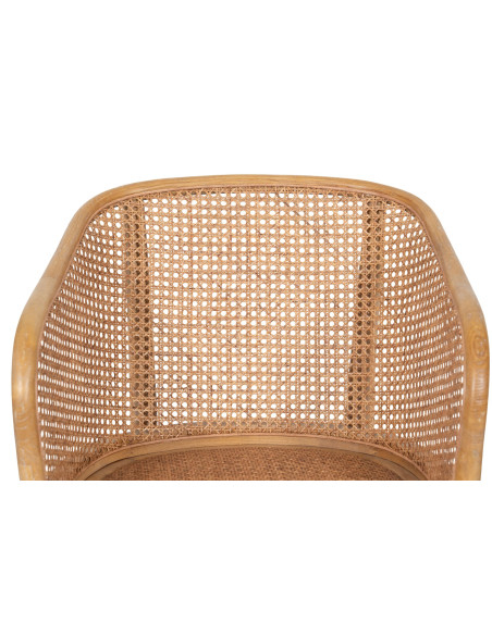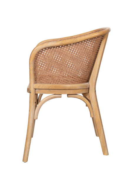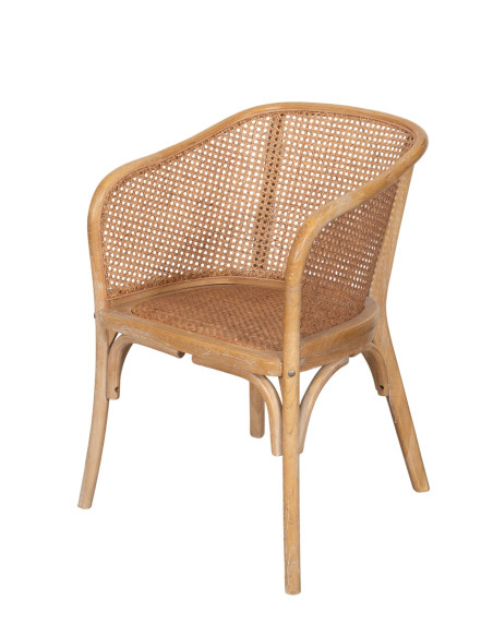 Stoel van massief hout en zitting van rotan met lichte notenhouten afwerking