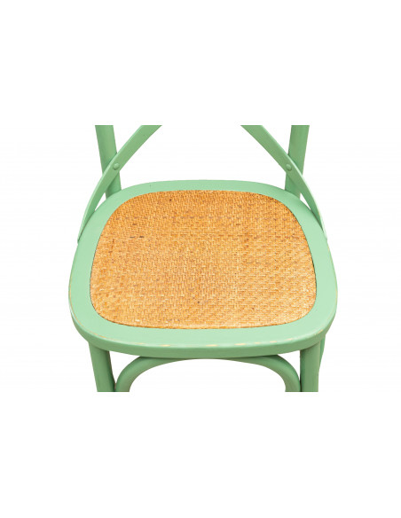 Thonet Cross-stoel van massief hout en zitting van rotan met antiek groene afwerking