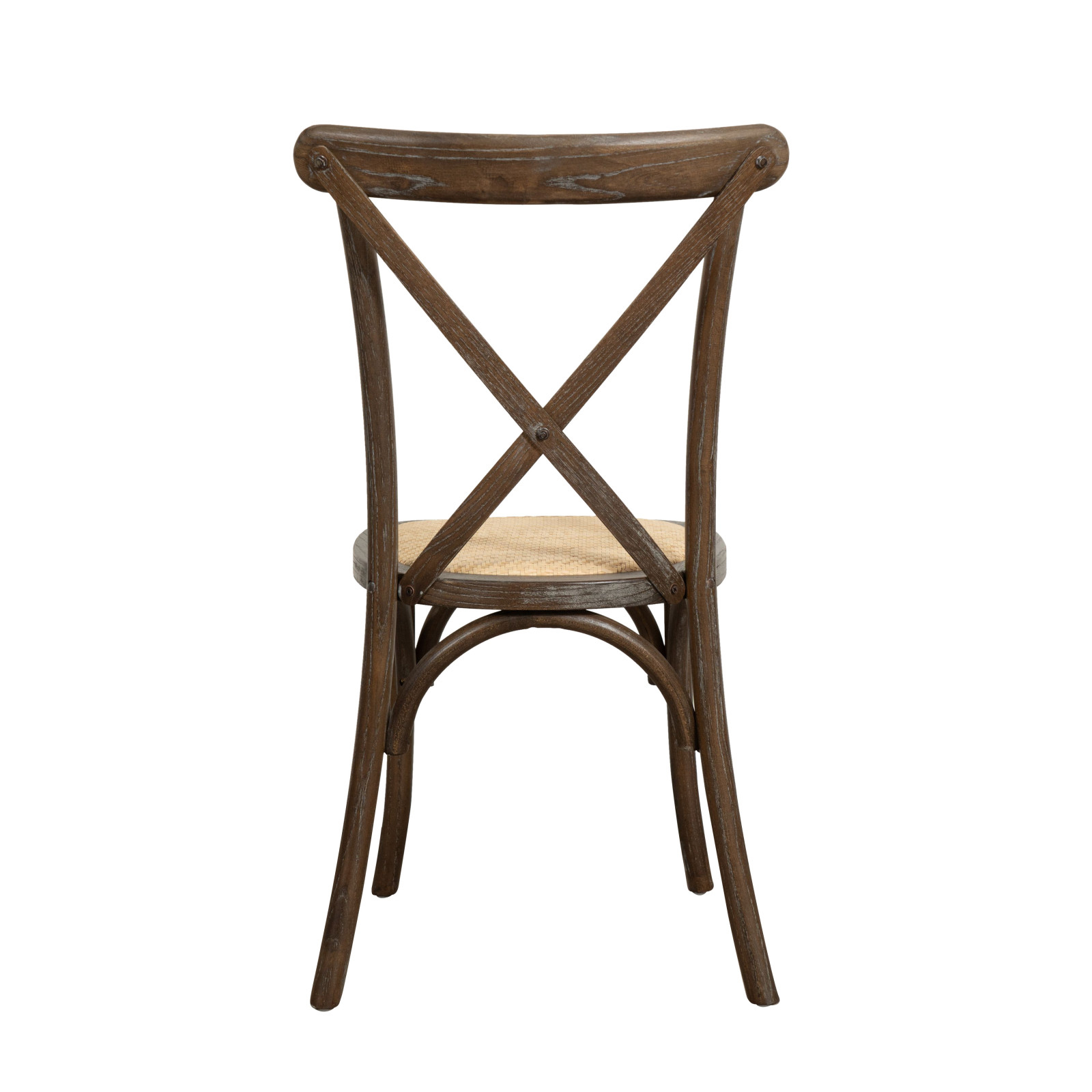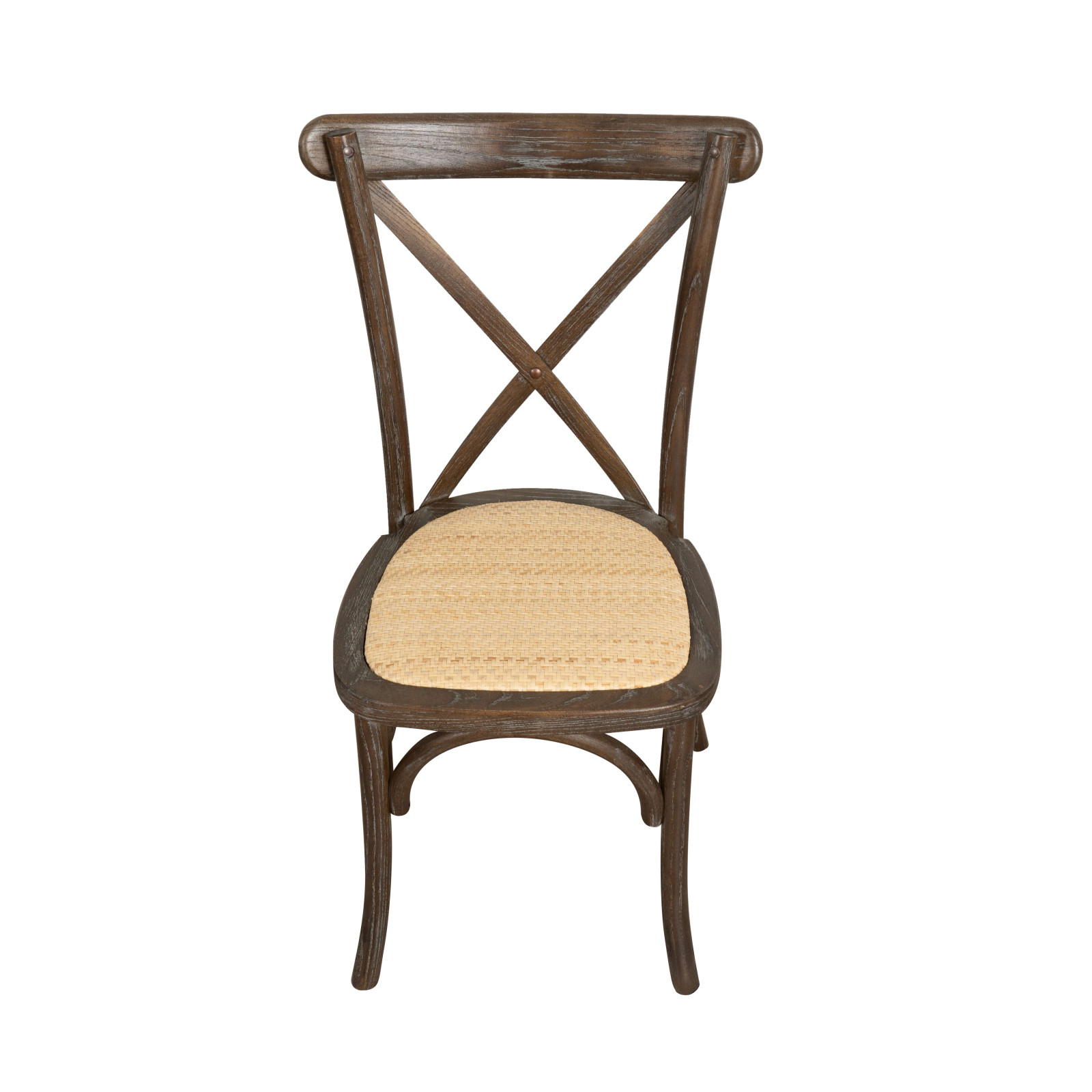 Thonet Cross-stoel van massief hout en zitting van rotan met antiekbruine afwerking, stapelbaar