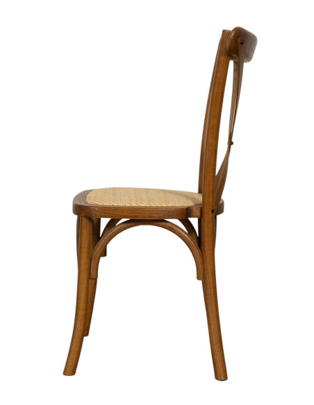 Thonet Cross-stoel van massief hout en zitting van rotan met verouderde houtafwerking, stapelbaar