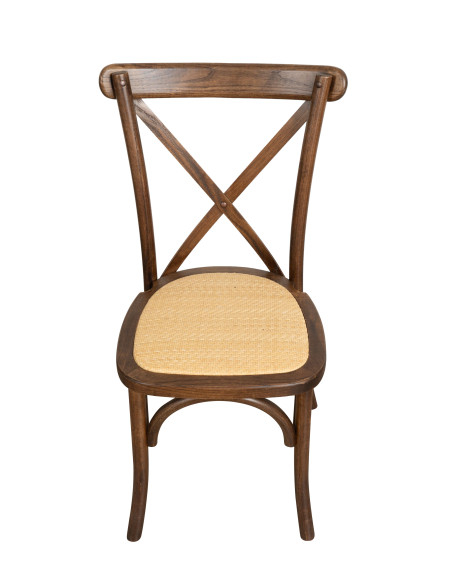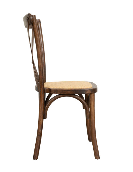 Thonet Cross-stoel van massief hout en zitting van rotan met walnootafwerking, stapelbaar