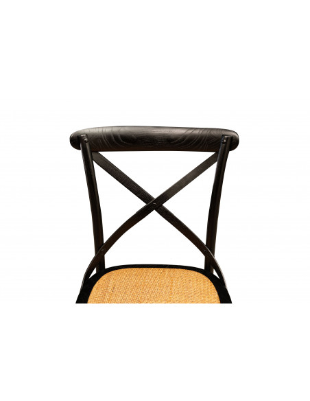 Stoel met een breedte van 45 cm, een diepte van 50 cm en een hoogte van 88 cm in Thonet-stijl, gemaakt van massief essenhout met een gekruiste rugleuning en een zitting van gevlochten rotan. Dankzij hun bistro-ontwerp zijn ze ideaal om elke ruimte of elk lokaal in vintage stijl in te richten, zonder in te boeten aan comfort.