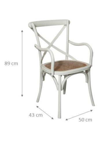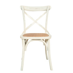 Thonet stoel in massief essen met antiek witte afwerking en Vienna rieten zitting L50xPR43xH89 cm.