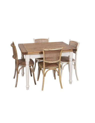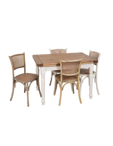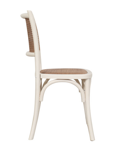 Stoel met een breedte van 45 cm, een diepte van 42 cm en een hoogte van 89 cm in Thonet-stijl, gemaakt van massief essenhout. Dankzij het bistro-ontwerp is deze stoel ideaal om elke ruimte of elk lokaal in vintage stijl in te richten, zonder in te boeten aan comfort. Alle afmetingen hebben betrekking op de maximale afmetingen van het artikel.