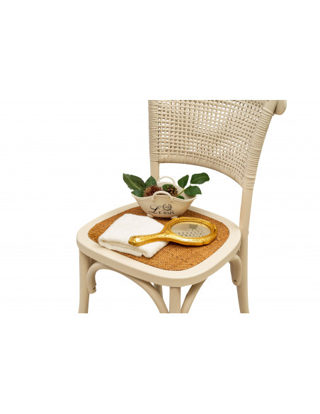 copy of Thonet-stoel in massief essenhout en rotanzitting met antieke witte afwerking L45xPR50xH88 cm