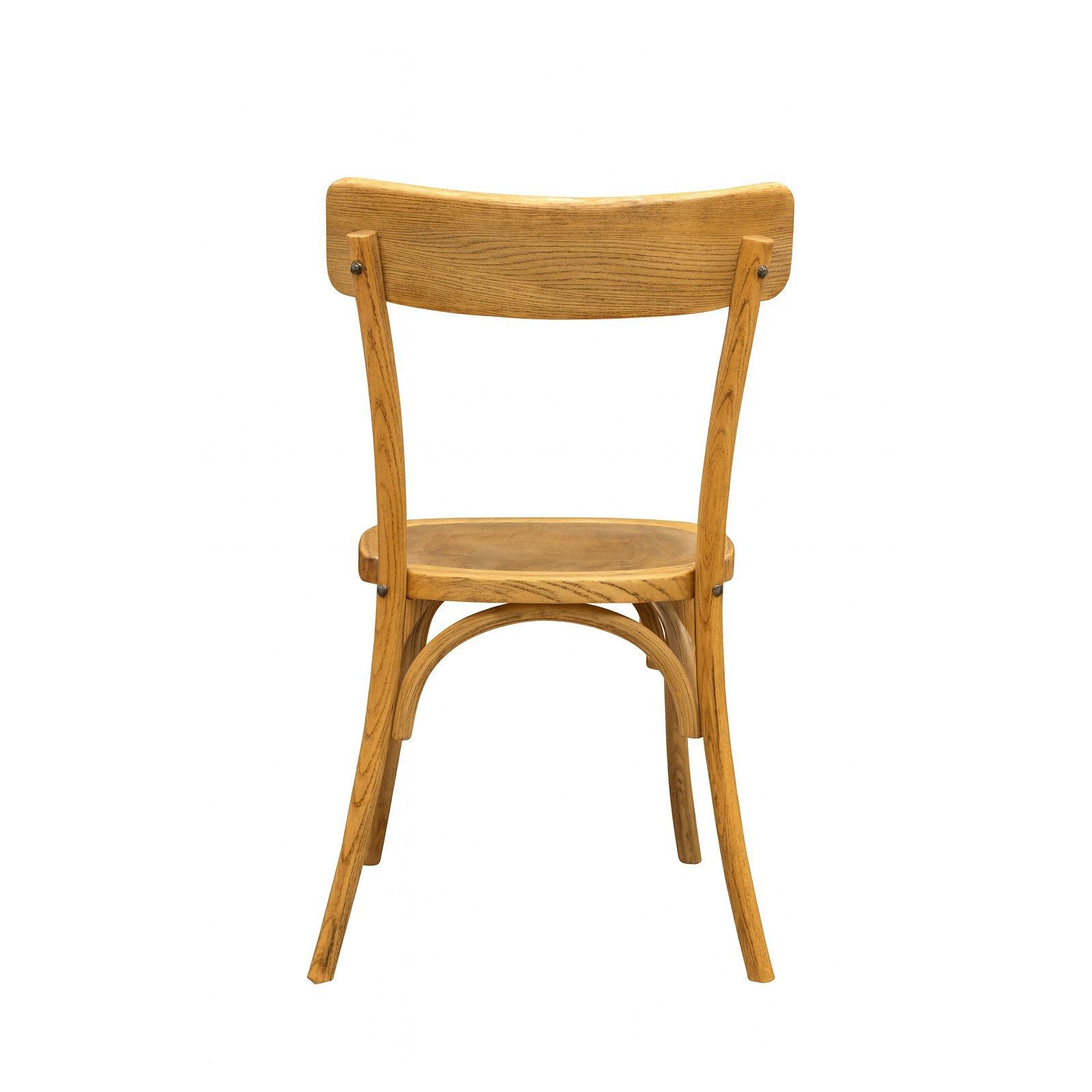 Deze stoel in Thonet-stijl, 48 cm breed, 55 cm diep en 88 cm hoog, is gemaakt van massief essenhout met een gekruiste rugleuning. Het bistrodesign maakt hem ideaal om elke ruimte of locatie een vintage uitstraling te geven, zonder in te leveren op comfort.