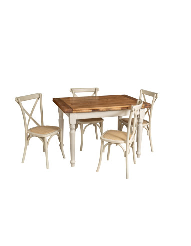 Stoel met afmetingen breedte 42 cm, diepte 44 cm, hoogte 88 cm in Thonet-stijl gemaakt van massief essenhout met gekruiste rugleuning. Dankzij het bistroontwerp is deze stoel ideaal voor het inrichten van elke kamer of locatie in vintage stijl, zonder aan comfort in te boeten. De hoogte van de vloer tot de zitting is 46 cm.