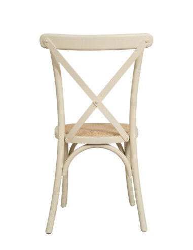 Stoelbreedte 48 cm, diepte 52 cm, hoogte 88 cm in Thonet-stijl gemaakt van massief essenhout met gekruiste rugleuning en zitting van geweven rotanvezel. Dankzij het bistro-ontwerp is hij ideaal om elke omgeving of kamer in vintage-stijl te decoreren, zonder dat dit ten koste gaat van het comfort.Alle afmetingen hebben betrekking op de maximale maat van...