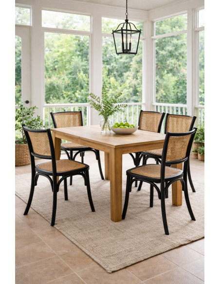 Stoel met een breedte van 45 cm, een diepte van 42 cm en een hoogte van 89 cm in Thonet-stijl, gemaakt van massief essenhout. Dankzij het bistro-ontwerp is deze stoel ideaal om elke ruimte of elk lokaal in vintage stijl in te richten, zonder in te boeten aan comfort. Alle afmetingen hebben betrekking op de maximale afmetingen van het artikel.