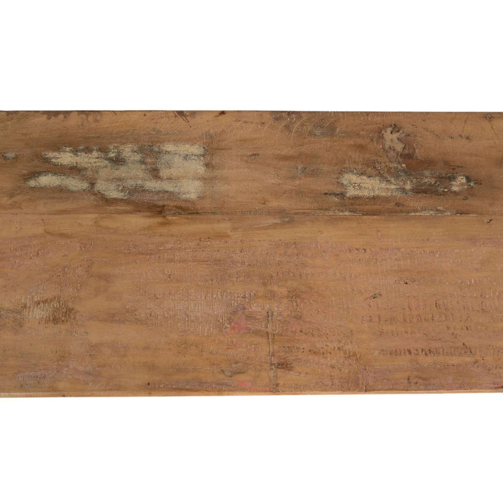 Kastje gemaakt van gerecycled massief hout met een breedte van 153 cm, een diepte van 40 cm en een hoogte van 76 cm. Met de hand beschilderd met natuurlijke verven, waardoor de vele nuances elk meubelstuk uniek maken. Stevig en functioneel, ideaal voor liefhebbers van antieke meubels en hout.